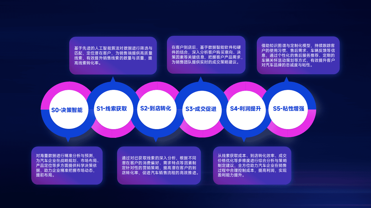 通过拓宽潜在客户来源、、优化线索分配并提高到店转化率,,,以增强销售效率。。。同时,,,,利用线索数据不断优化分析模型,,有效提升转化率,,,,扩大营销影响力。。。